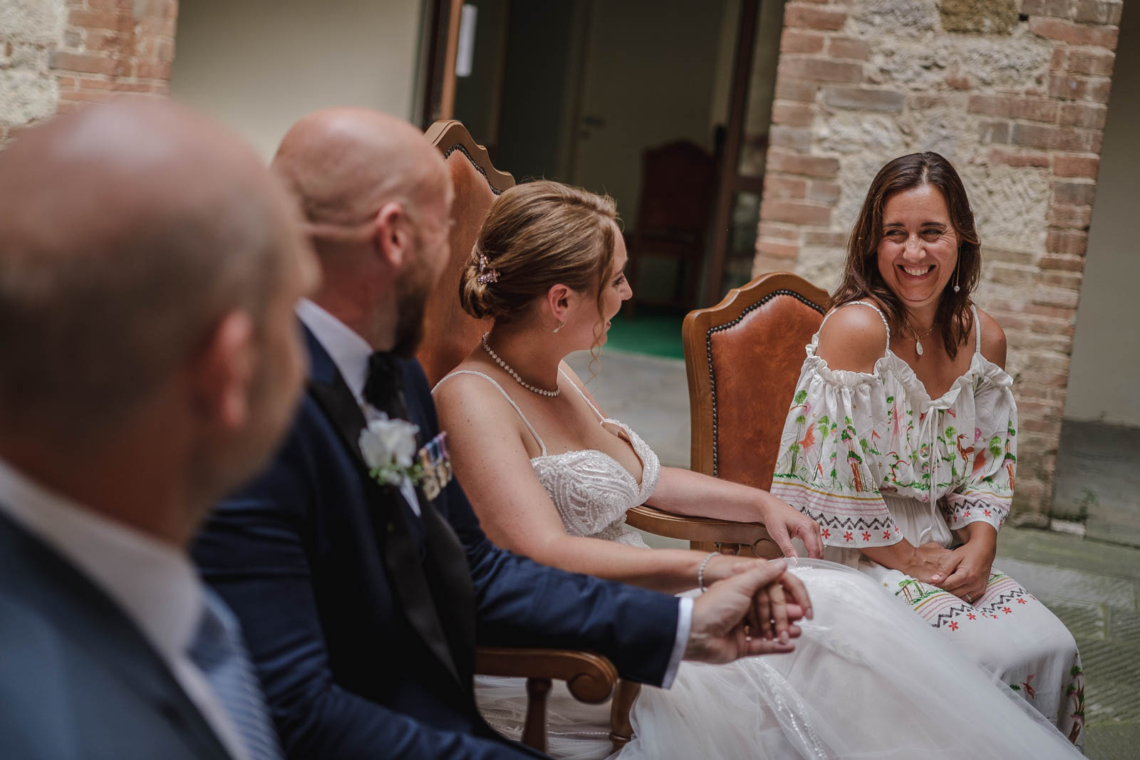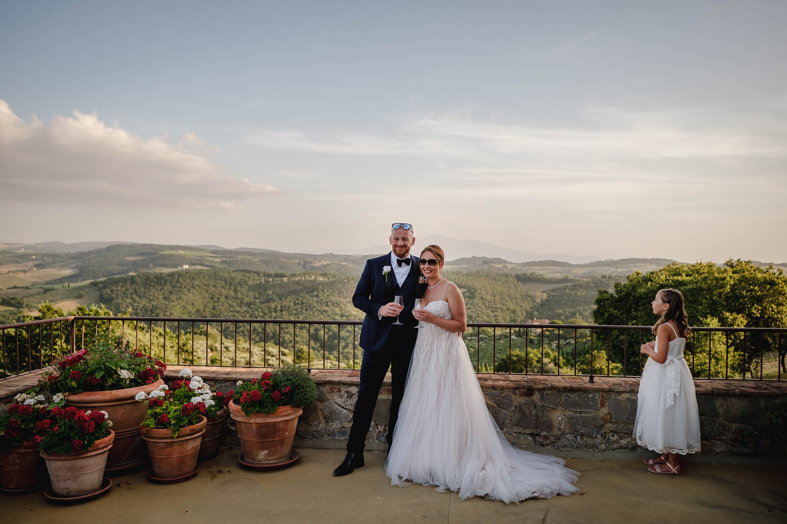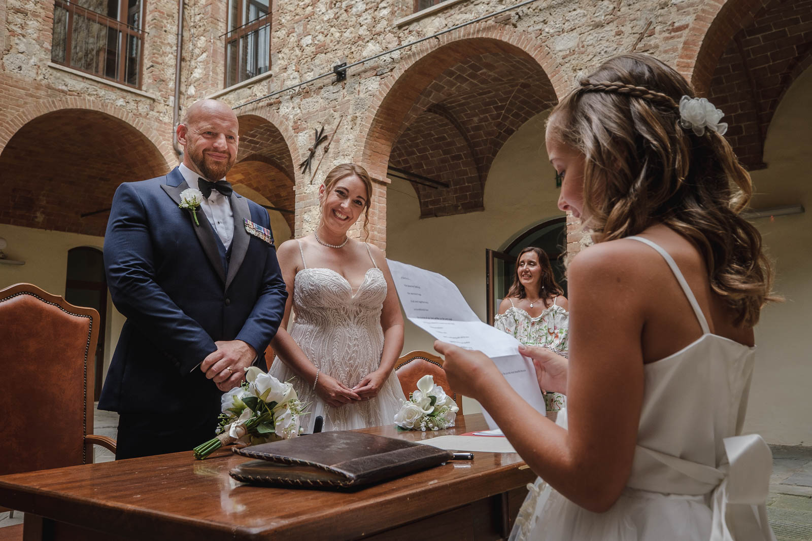 Rito civile nel cortile interno della Fortezza Medicea di Montepulciano. Sede del consorzio del vino di Montepulciano, ha una enoteca interna molto fornita con un piccolo giardino con vista sulla val d'Orcia.